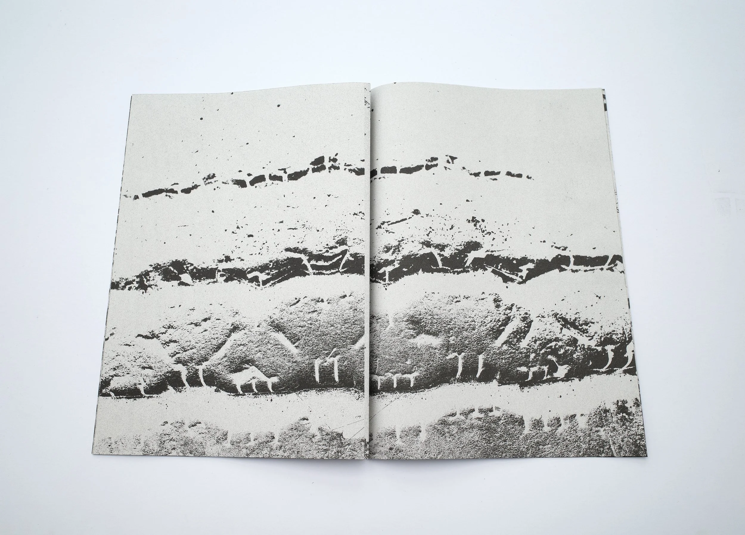 The zine is a collection of photographed objects associated with land and sea. I chose single colour black ink throughout for cohesiveness and to highlight the mark-making. The zine acts as data visualisation of the documented sites.